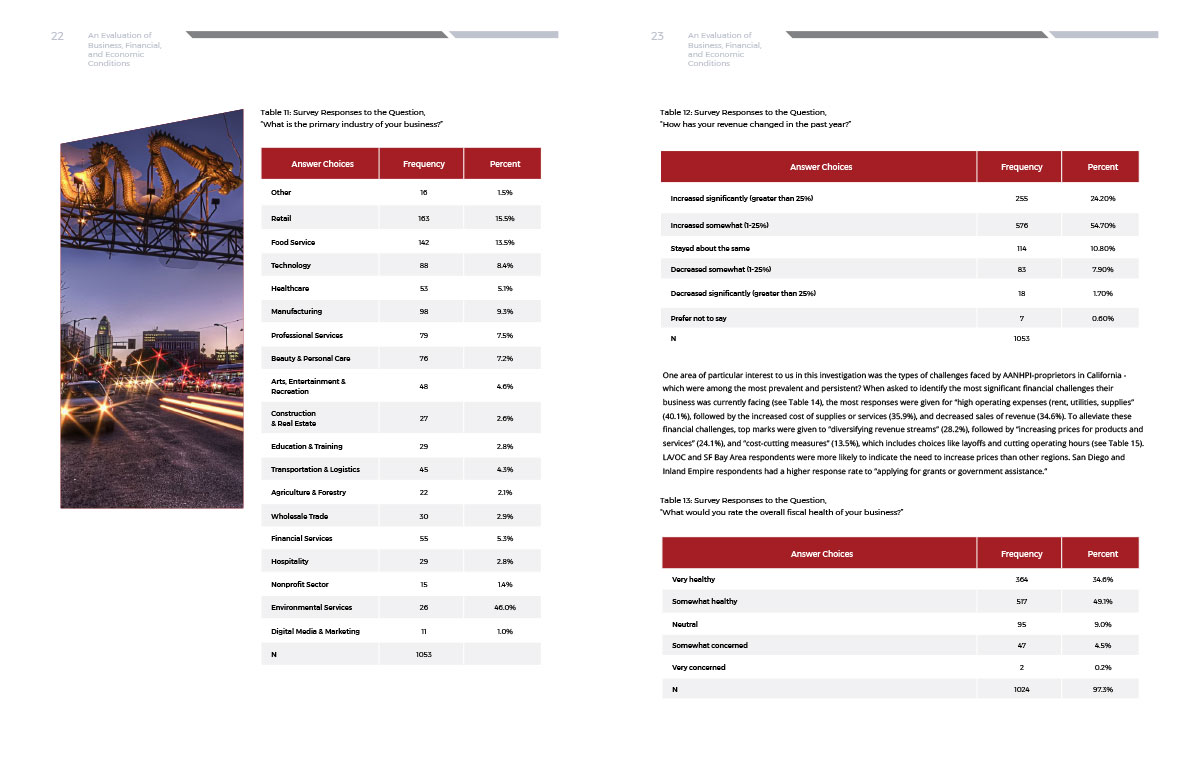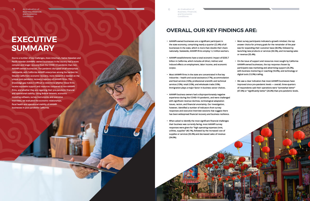 Designed a comprehensive report on Asian, Native Hawaiian, and Pacific Islander (AANHPI)-owned Businesses in California, commissioned by the Asian Business Association Foundation.