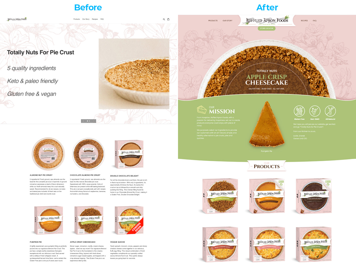 Designed a beautiful WordPress website for Ruffled Apron Foods, a nationwide company committed to crafting the most delicious and high-quality pie crusts and quiches.